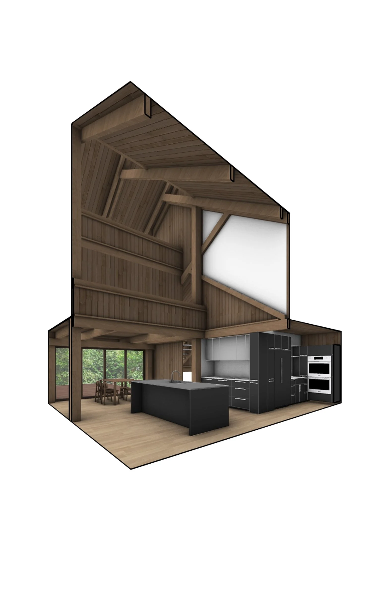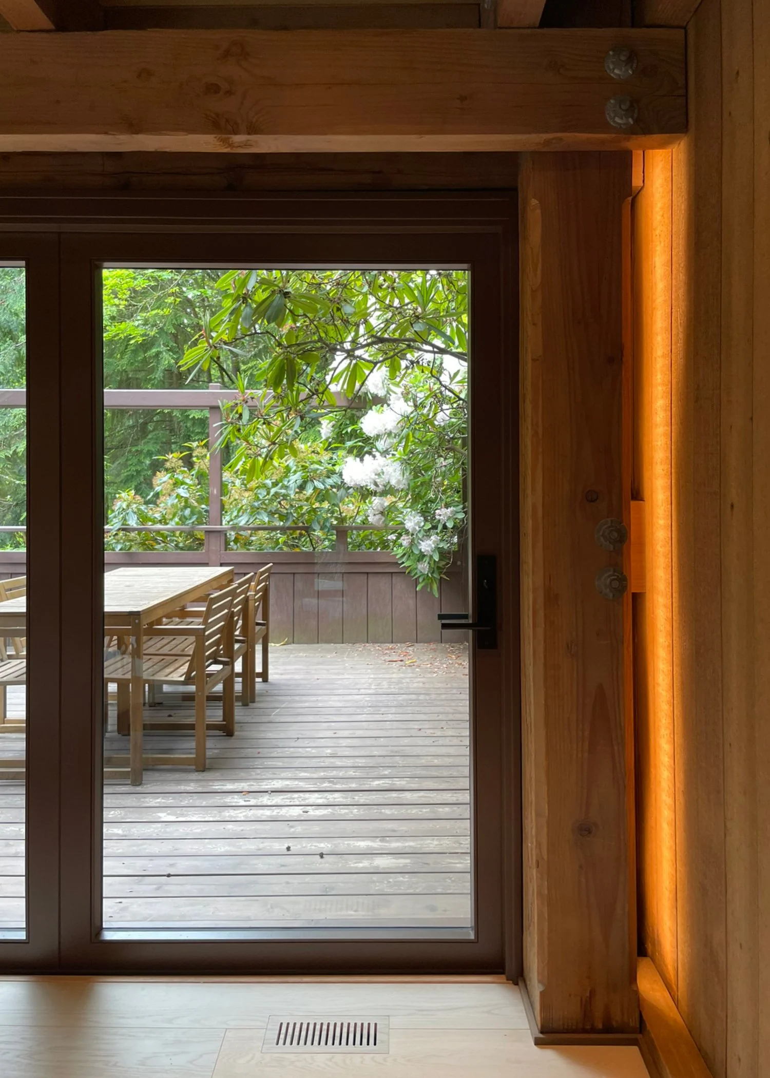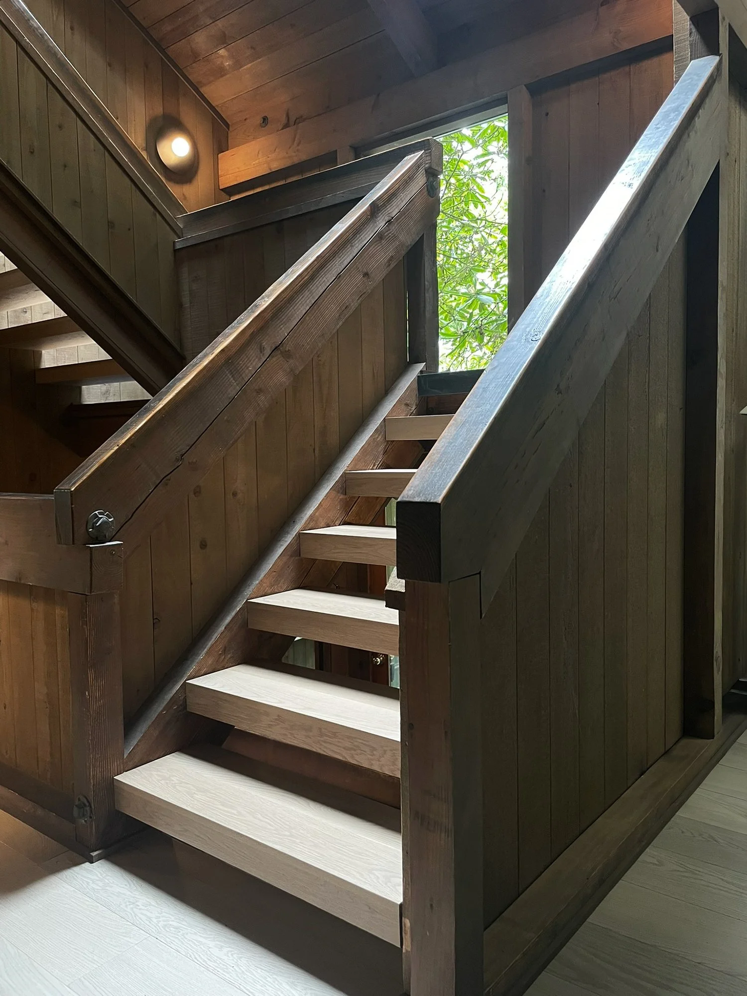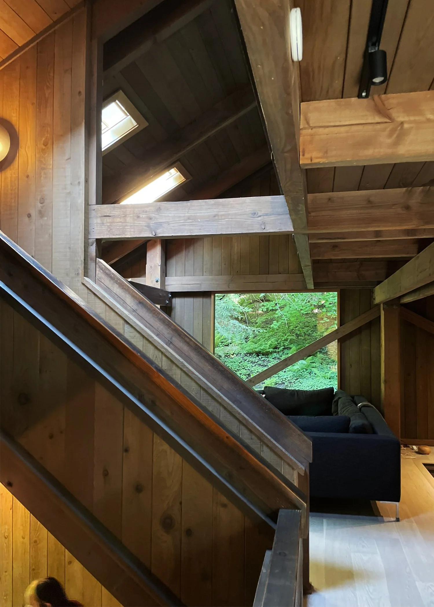 This renovation centered around celebrating the rigor and materiality of the existing Mercer Island home, designed by Dan Calvin in the 1960’s. Interventions are carefully located within the rhythm of exposed wood framing. Updates to the kitchen, dining, and upstairs areas allow for a better indoor-outdoor connection while maintaining the open-air and dramatic sectional quality of the vaulted spaces.