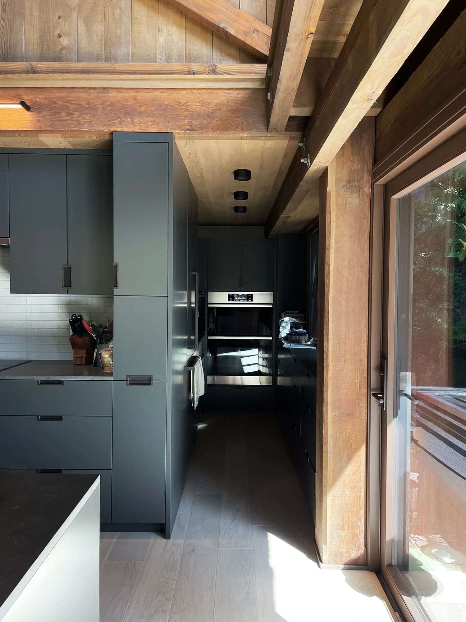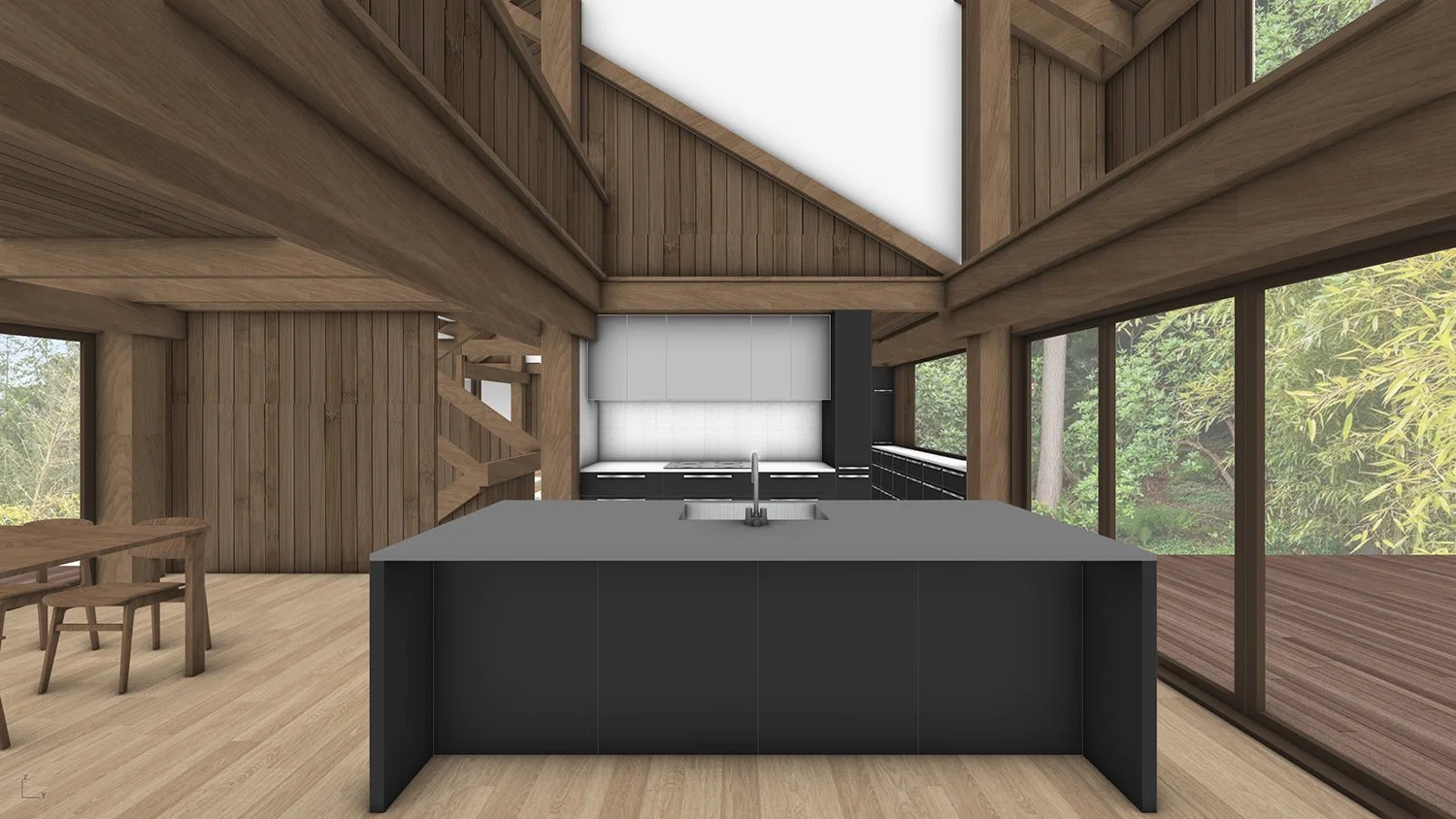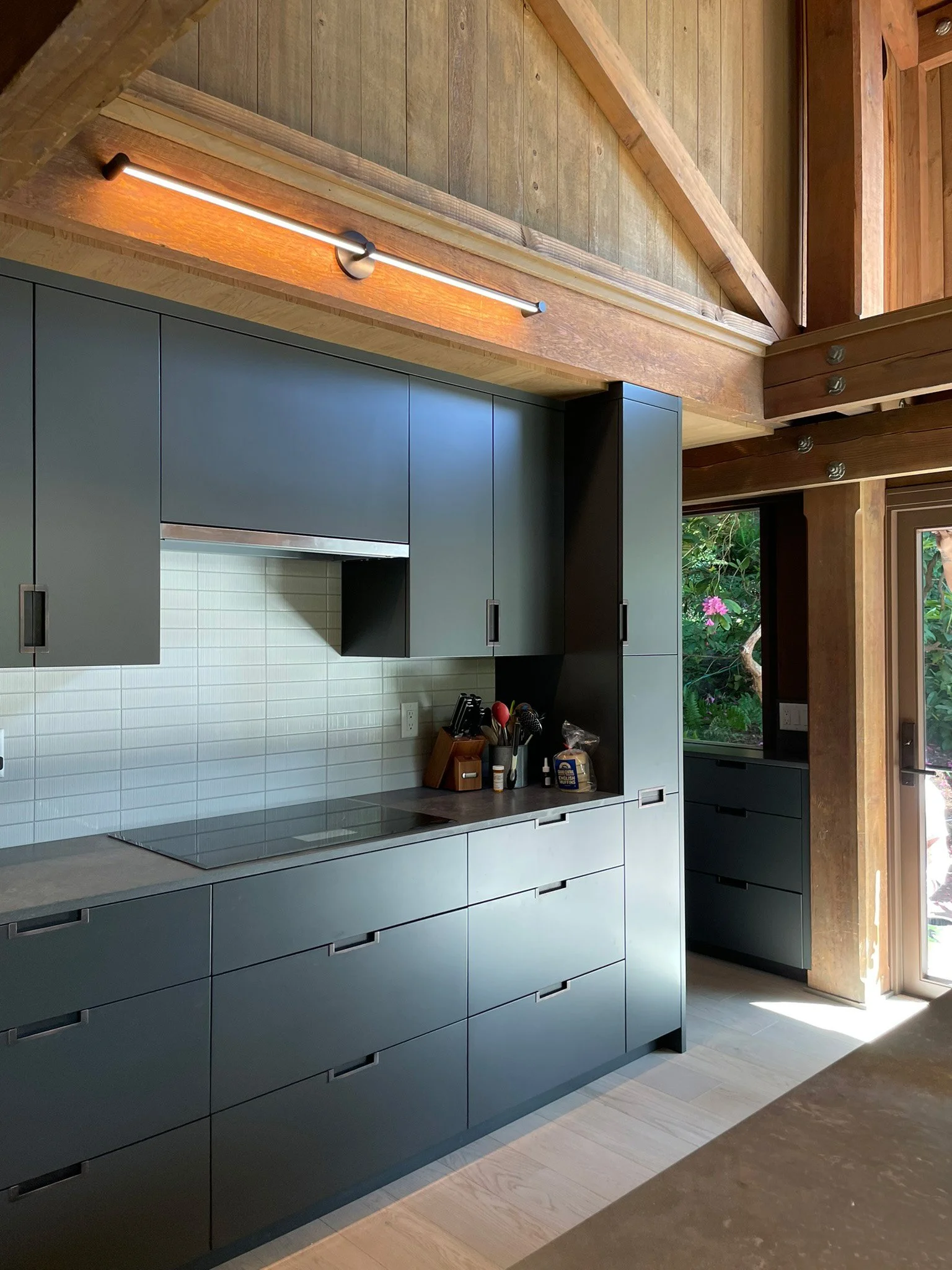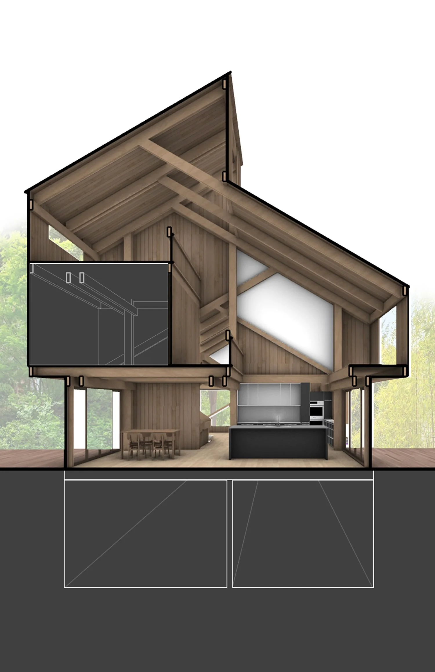 This renovation centered around celebrating the rigor and materiality of the existing Mercer Island home, designed by Dan Calvin in the 1960’s. Interventions are carefully located within the rhythm of exposed wood framing. Updates to the kitchen, dining, and upstairs areas allow for a better indoor-outdoor connection while maintaining the open-air and dramatic sectional quality of the vaulted spaces.